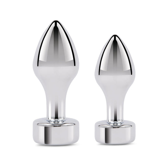 Gemsations 2Pc Tapered Bling Bling Metal Butt Plug Training Set Silver
